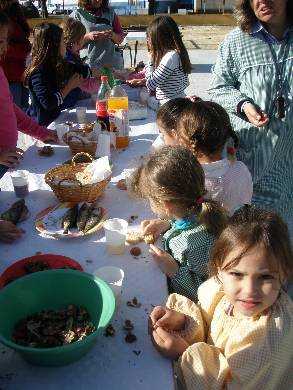 Olá amigos! Hoje comemorámos o Dia de S. Martinho com os nossos colegas da escola do 1º ciclo, no recinto de festas de S. Matias. O Magusto foi organizado pela Junta de Freguesia de S. Matias. Na festa havia castanhas, sardinha assada e febras na brasa. No final da festa o senhor Presidente da Junta de Freguesia ofereceu gomas a todos os meninos.