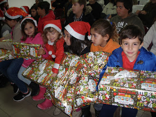 Olá amigos! Hoje realizou-se a nossa Festa de Natal na Casa do Povo de S. Matias. Declamámos poesias, cantámos cânticos de Natal e ainda cantámos "Modas Alentejanas" que aprendemos nas aulas de Cante Alentejano. Recebemos presentes de Natal e almoçamos Pizza. Foi uma manhã muito bem passada e divertida!