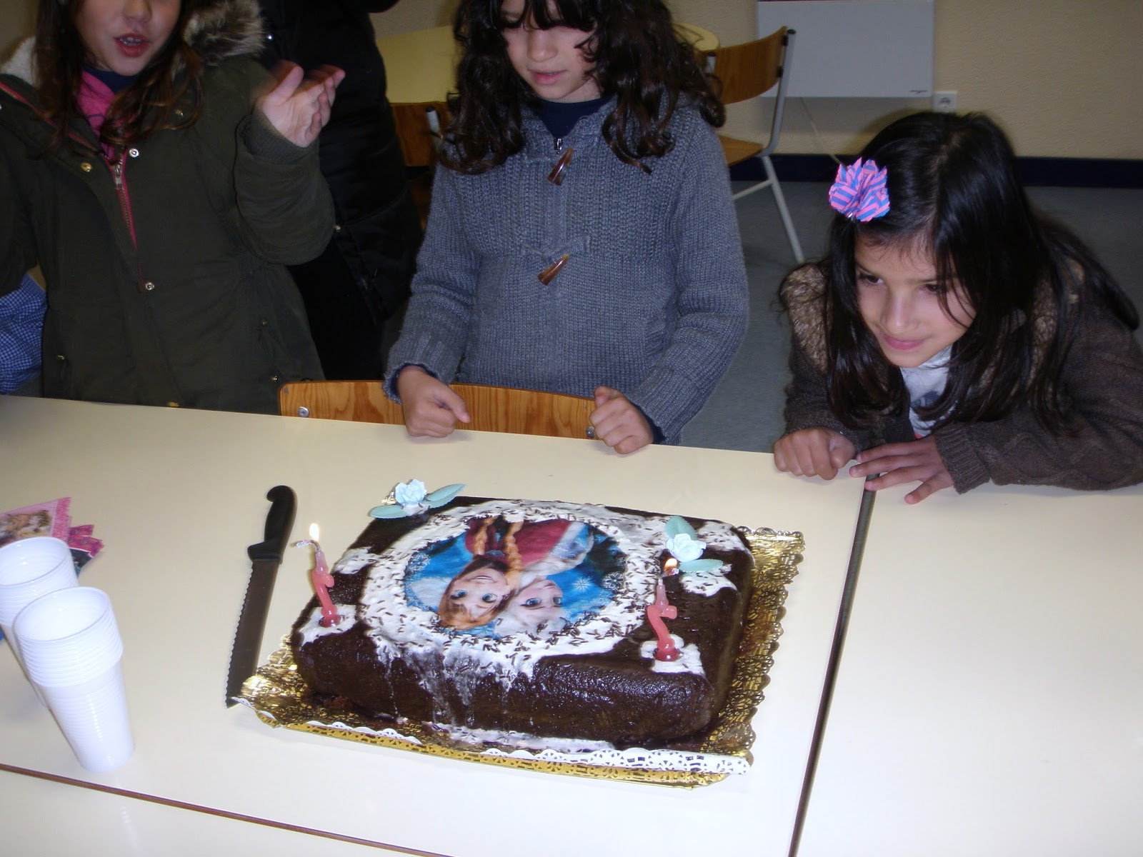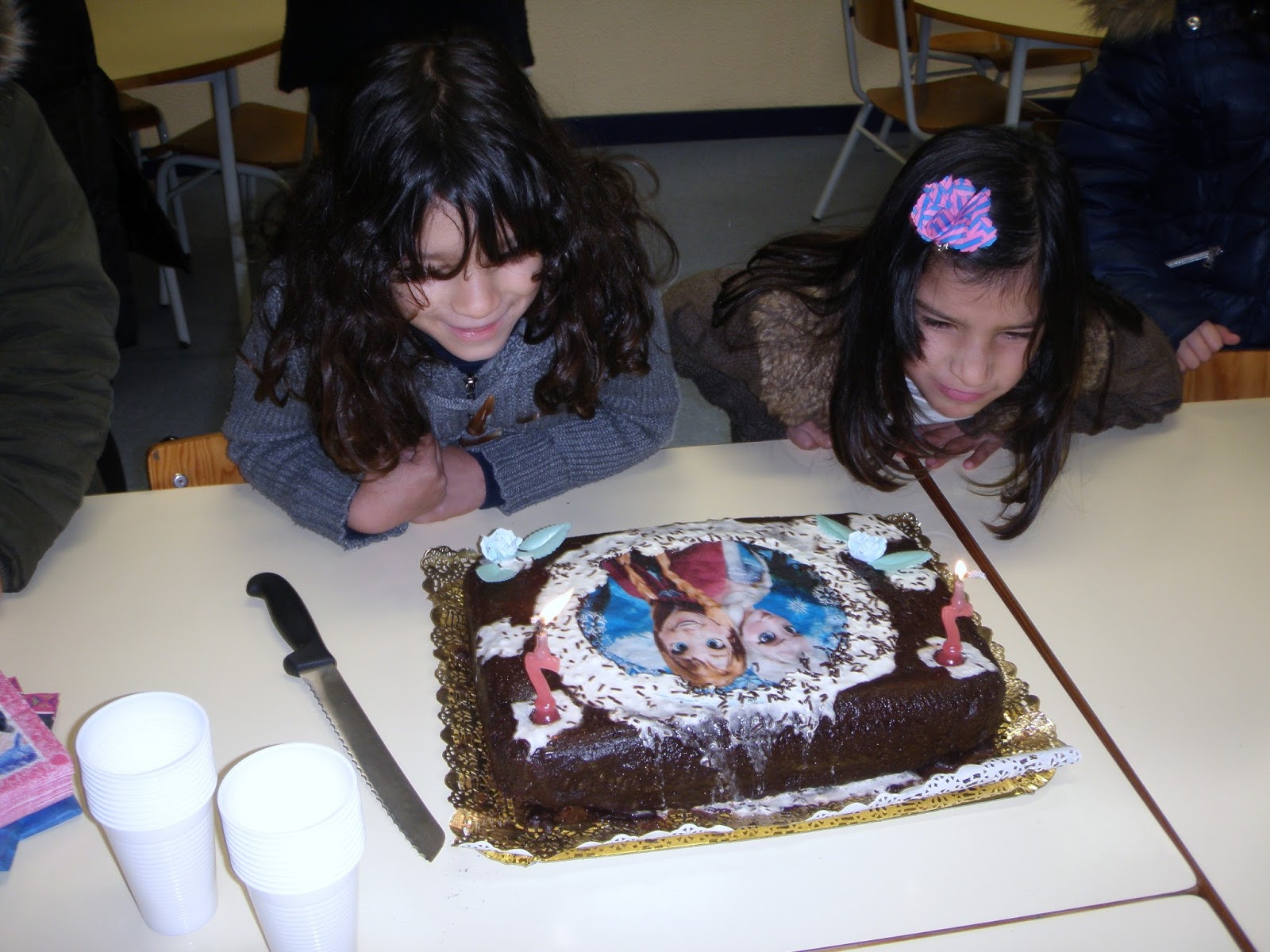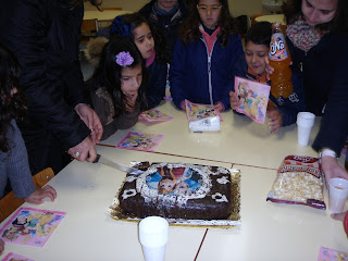 Olá amigos! Hoje, as nossas colegas gêmeas (Alexandra e Carolina) completaram 7 anos de idade! Houve festinha de aniversário, com bolo de chocolate e muita animação.