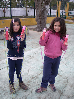 Olá amigos! Além do jogo do galo, do jogo do alfabeto e do jogo da macaca, agora também aprendemos a jogar ao jogo do elástico e a saltar à corda! Ora vejam: