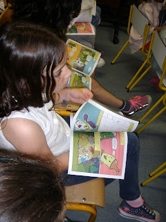 Olá a todos! Iniciámos o 3º período letivo com a realização de uma sessão de sensibilização na área da Educação Ambiental, dinamizada pela Agente da Escola Segura Ana Costa. Procedeu-se a uma abordagem na área da Reciclagem e Preservação do planeta, em geral. No final da sessão foram distribuídos por todos os alunos da EB1/JI de S. Matias, livros, brochuras e um saco reciclável para as compras. Gostámos bastante!