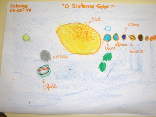 Olá amigos! Ora aqui estão os nossos desenhos representativos do "Sistema Solar". Hoje aprendemos que todos os planetas giram à volta do Sol!