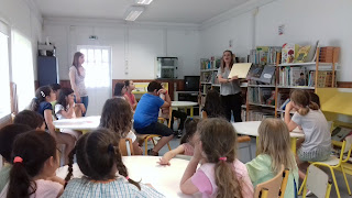 "Sessão de leitura na biblioteca escolar"