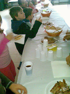 Olá amigos! Hoje comemorámos o Dia de S. Martinho na Casa do Povo de S. Matias em articulação com os nossos colegas da escola do 1º ciclo e os idosos da localidade. A Junta de Freguesia ofereceu um lanche/magusto a todos os presentes. De tarde, levámos para casa os cartuchos de castanhas que fizemos com a animadora.