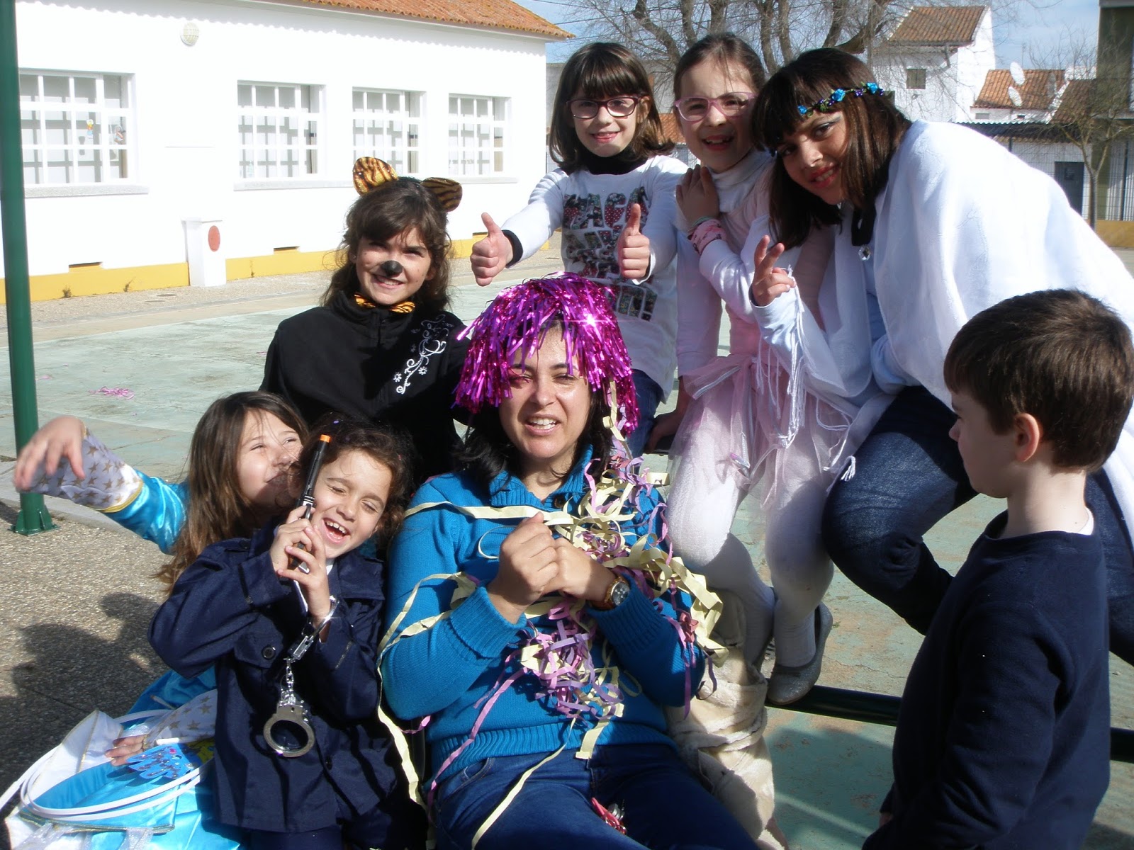 Olá a todos! Hoje desfilámos pelas ruas da nossa aldeia. Os nossos familiares também nos acompanharam e a Junta de Freguesia ofereceu um lanche a todos, após o desfile.