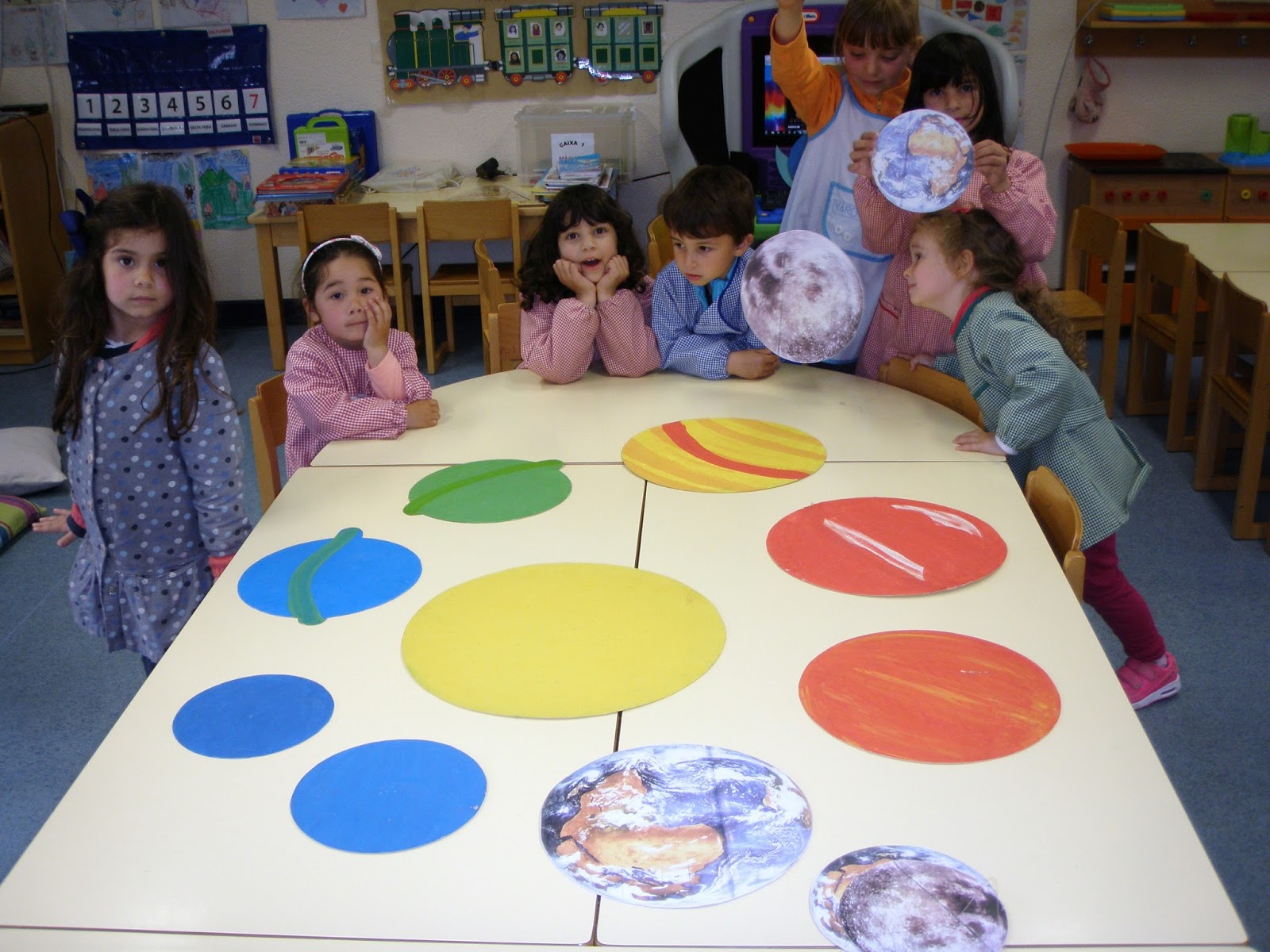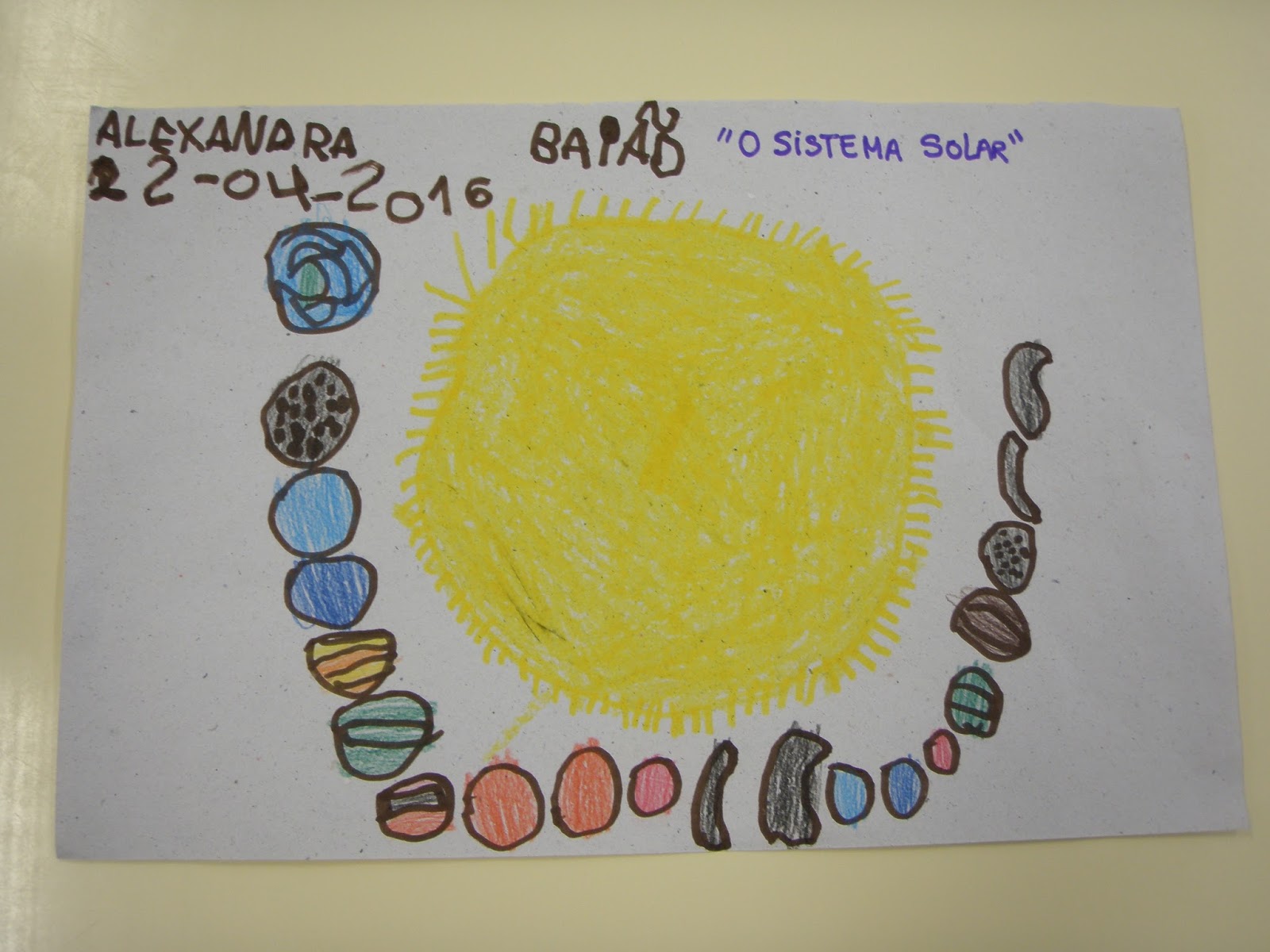 Olá amigos! Deixamos aqui algumas fotografias relacionadas com o Projeto "O Sistema Solar". Hoje aprendemos os nomes dos planetas que constituem o Sistema Solar e também aprendemos que todos os planetas giram à volta do Sol.
