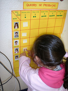 Olá amigos! Iniciámos a semana com uma atividade direcionada para a área da matemática. Vimos como se constrói um quadro de dupla entrada e para que serve....neste caso concreto, vai servir para marcar as nossas presenças diárias.