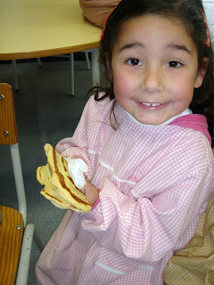 Olá a todos! Hoje também aprendemos a fazer crepes (receita da professora Madalena) com os nossos colegas da escola do 1º ciclo! Como não apreciamos muito o bolo Rei, optamos pelos crepes.....Hum....Estavam deliciosos! Ora vejam: