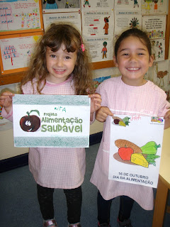 Também demos início ao projeto "A Brincar e a Aprender com Saúde eu vou Crescer", do qual a aposta é o lanche saudável! A enfermeira Eunice trouxe para a nossa sala um quadro de dupla entrada intitulado "Eu hoje trouxe fruta", no qual iremos marcar com um "estrela", os dias em que trazemos fruta no nosso lanche. Objetivo maior: comer FRUTA todos os dias!