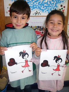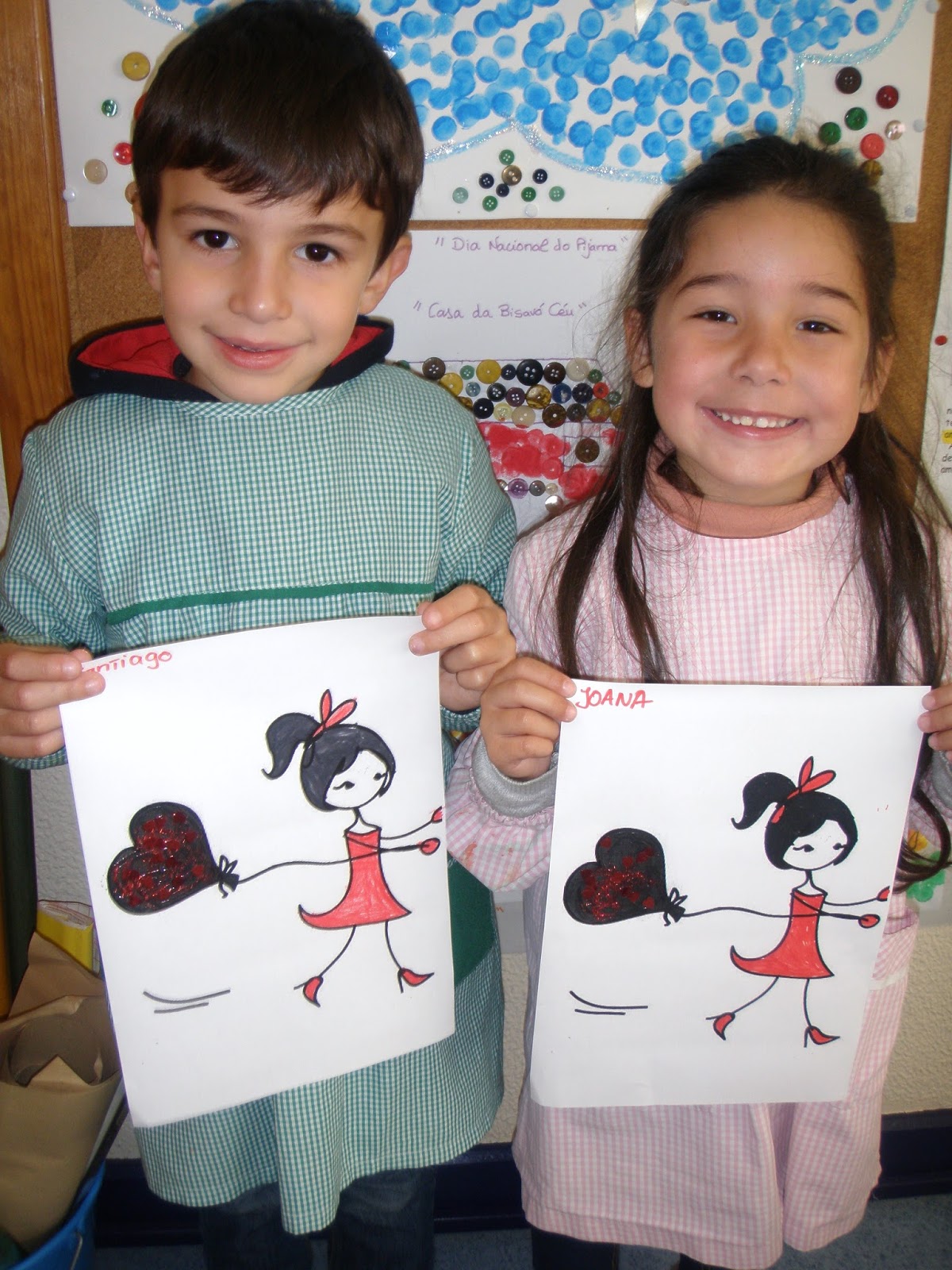 A partir da referida história, decorámos balões vermelhos com carimbagem e Glitter, assim como pintámos a personagem principal da história.